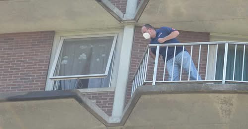 “I was out on the balcony, and I had seen the firefighters and the paramedics coming up, and – to get him up off the ground,” Leslie said.