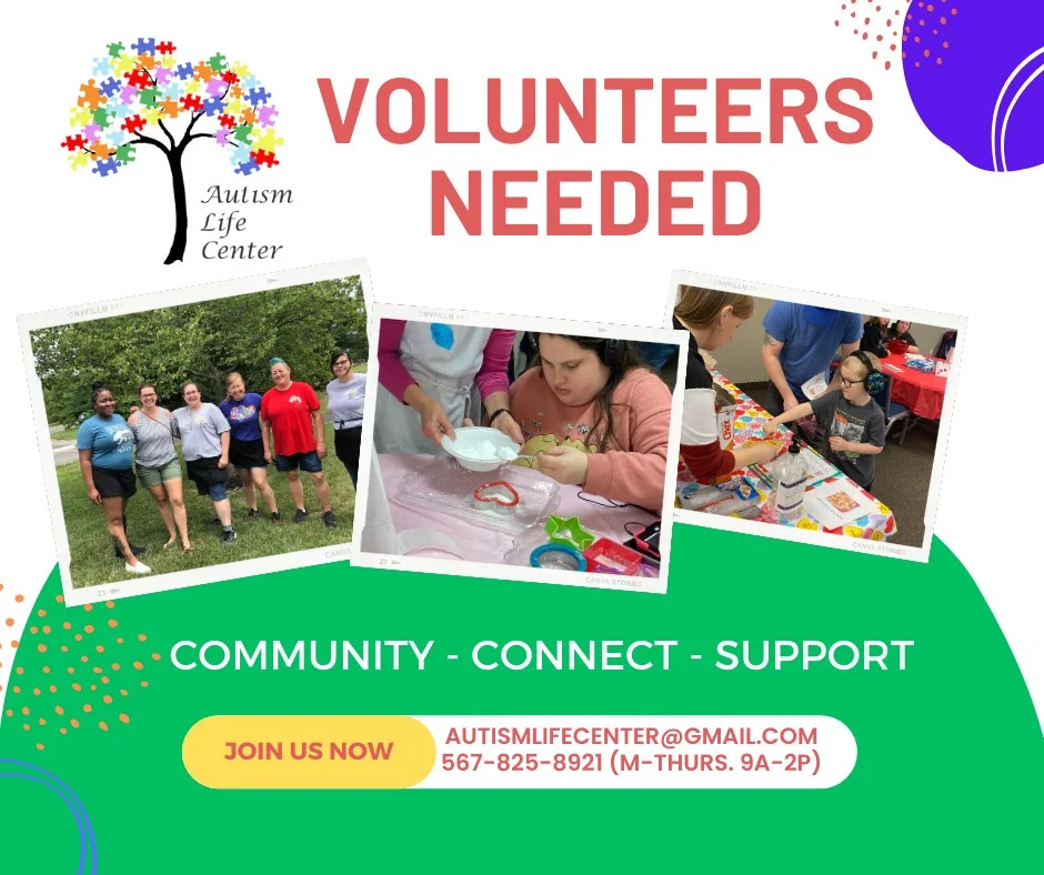 Autism Life Center in Lima is looking for volunteers to help with event planning and hosting, set up/tear down, craft and activity tables and more.