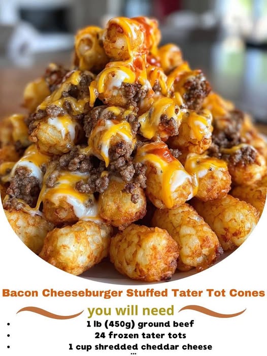 Bacon Cheeseburger Stuffed Tater Tot Cones are a playful, delicious, and satisfying twist on two American favorites: cheeseburgers and tater tots. This fun dish combines crispy tater tots shaped into cones, filled with juicy ground beef, melty cheese, and bacon—a dream for kids and adults alike. Whether you’re planning a game-day appetizer, party snack, or creative dinner, this recipe is sure to impress.
