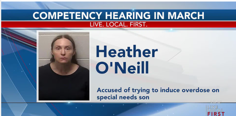 An investigation began on June 20, 2023, when O’Neill called 911 to report she had taken and given her son multiple medications in an attempt to cause a fatal overdose. Investigators located multiple prescription bottles, sleep aids and allergy medications at O’Neill’s home. Court documents state the child had been diagnosed with autism and had limited communication skills.