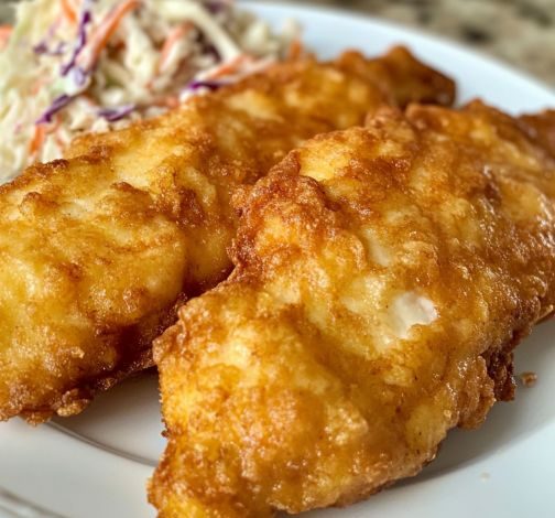 - Coat the fillets/tenders: Dip each fillet or tender into the batter, allowing any excess to drip off.