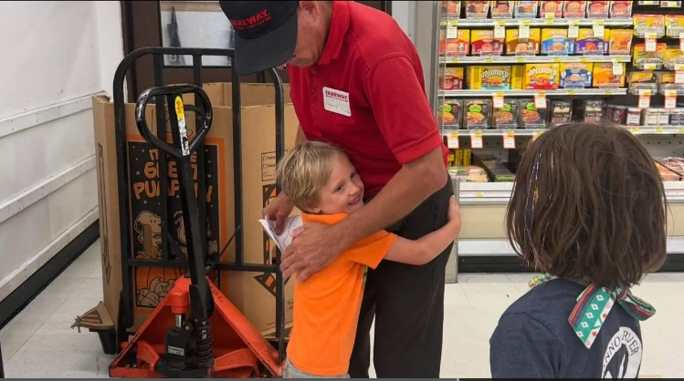 “Hi Jay!” says Odin, greeting a Fareway bagger with a wave and hug.