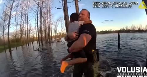 Volusia County Sheriff’s Deputy Wes Brough scooped the boy up, and the child wrapped his arms tightly around Brough’s neck as they trudged back to dry land on Tuesday evening in Deltona, which is near Daytona Beach on Florida’s Atlantic Coast.
