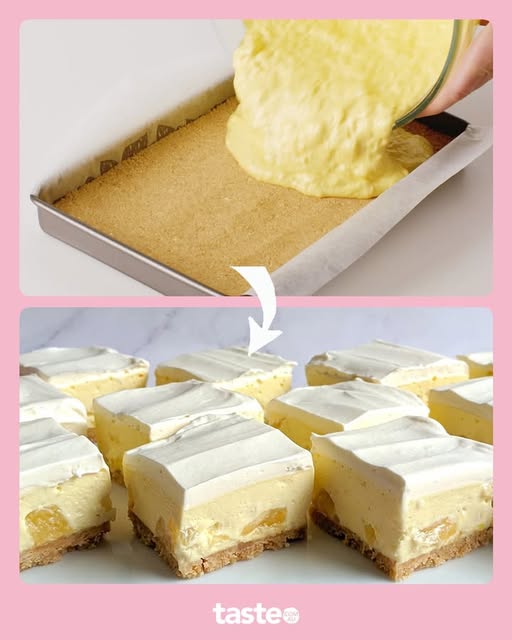Step 6Pour mixture over prepared base in pan. Smooth top. Place in the fridge for 6 hours or overnight until set.
