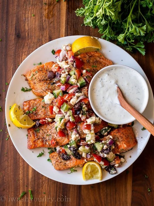 Grilled Salmon with Greek Salsa