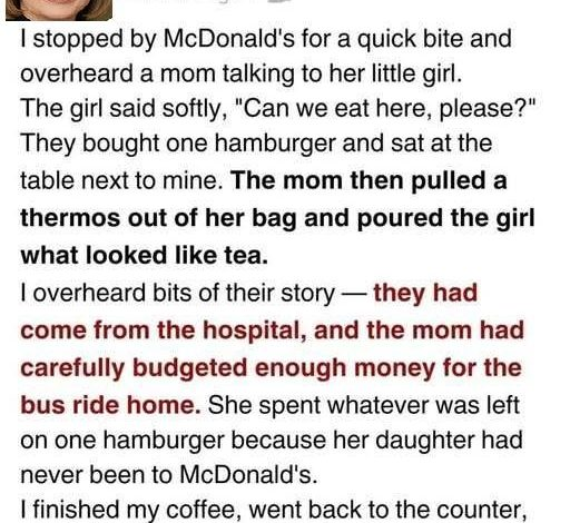 Sometimes, life’s most meaningful lessons appear in the simplest, most ordinary settings. One evening, I stepped into a local McDonald’s completely exhausted. The day had drained me, and I was moving through the world on autopilot. That’s when I noticed a mother and her young daughter. The mother wore a thin, worn coat that had clearly endured many harsh winters. Her daughter’s eyes were filled with a fragile hope—“the kind children hide when they know it might not be rewarded.”