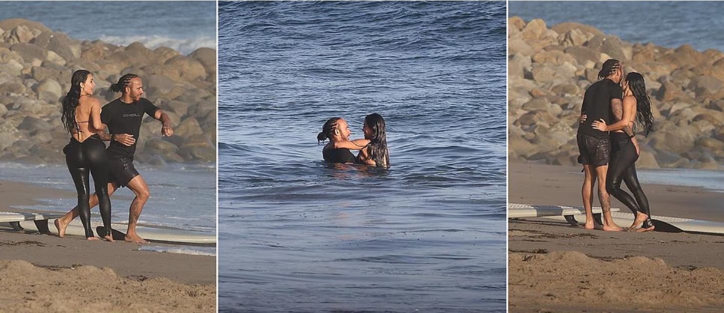 They were also pictured side by side in the surf before Hamilton took his paddle board out for a ride.
