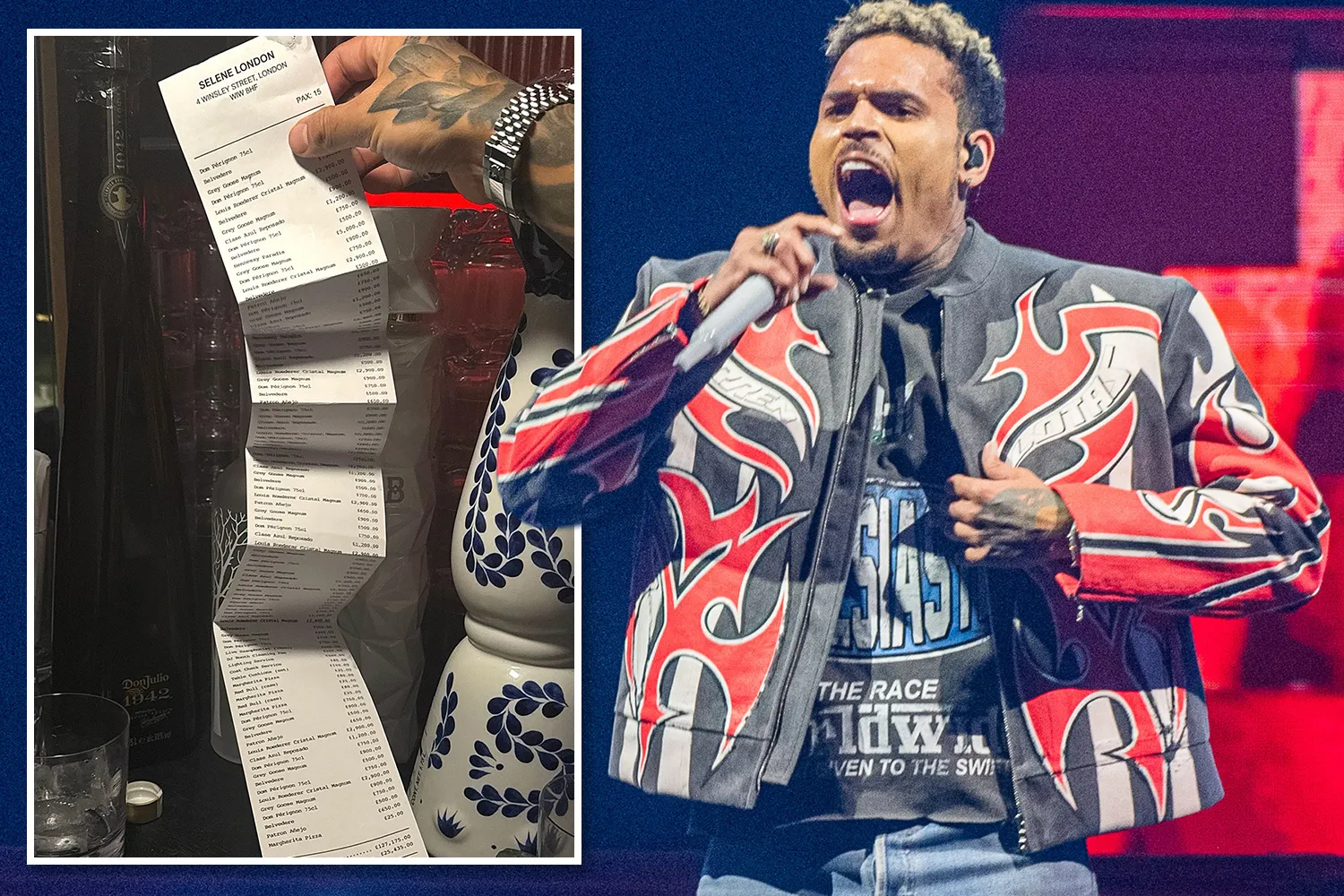 A receipt from Brown’s wild night showed the total bill of more than £160,000Credit: