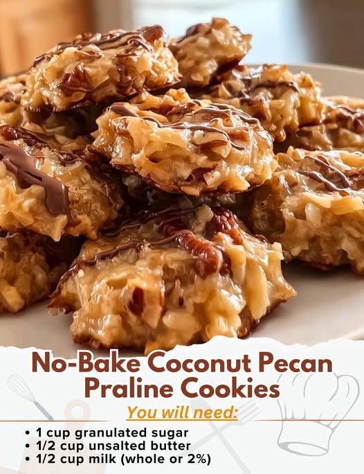 No-Bake Coconut Pecan Praline Cookies are the kind of sweet treat that feels like it came straight from a well-loved family recipe box. I remember the first time I made these on a warm afternoon when turning on the oven just wasn’t an option. The smell of sugar bubbling on the stove, the toasted pecans, and that rich vanilla aroma filled the kitchen and instantly reminded me of old-fashioned candy-making days.