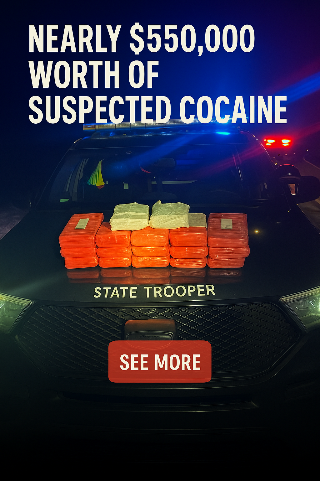 During the stop, a K-9 unit was deployed and alerted troopers to the presence of narcotics in the vehicle. Further inspection of the vehicle revealed suspected cocaine hidden inside.