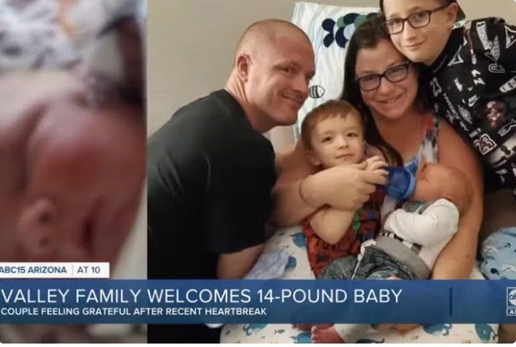 An Arizona mother is celebrating with joy and gratitude after giving birth to a healthy 14-pound baby boy last week. Previously, she and her husband had suffered multiple miscarriages but hadn’t given up hope of having another child.