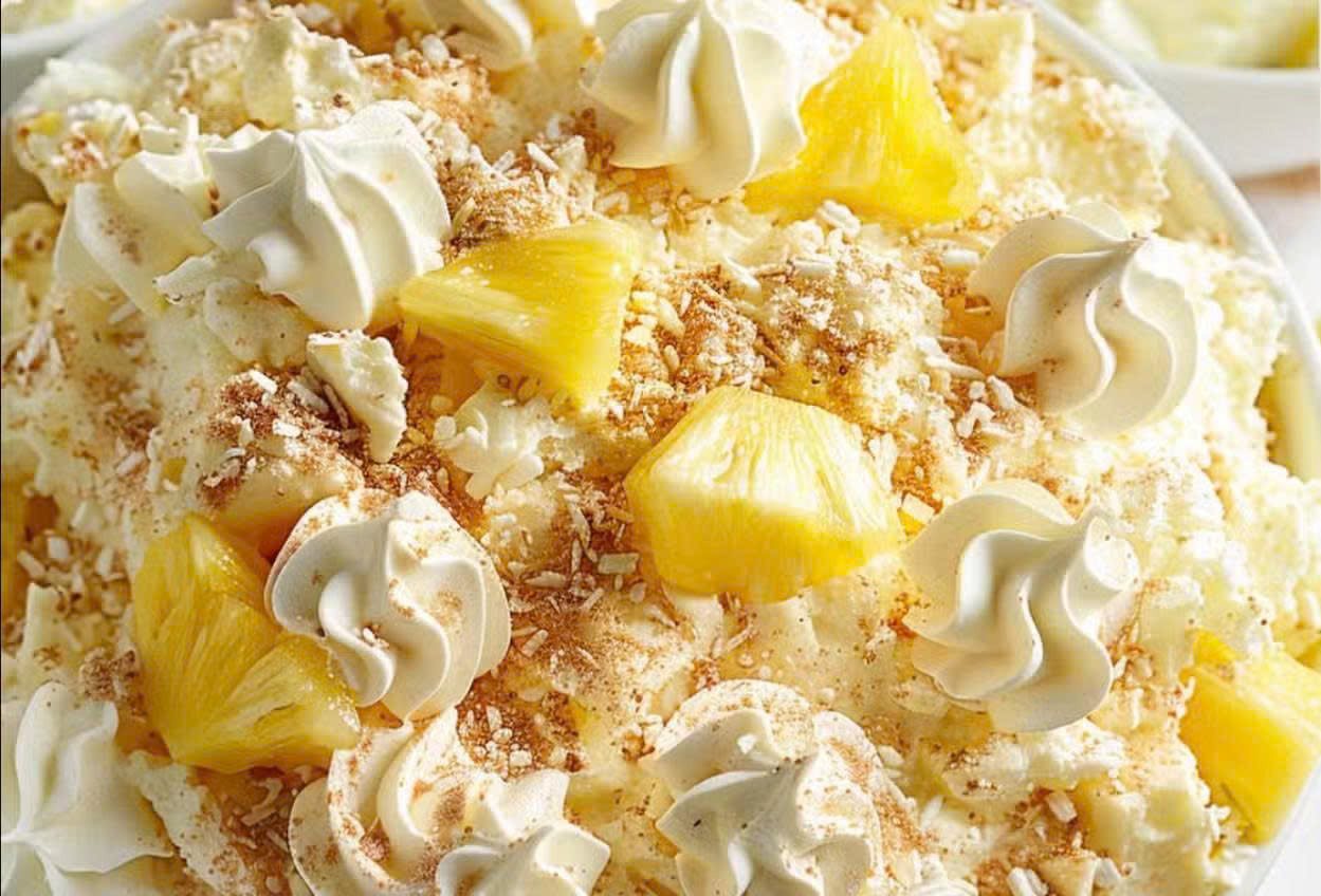 If you’re dreaming of something sweet, tropical, and irresistibly easy to make, look no further than this Pineapple Fluff! This light and creamy dessert is the kind of dish that makes you want to dig in with a big spoon and never stop. With juicy crushed pineapple, fluffy Cool Whip, sweet vanilla pudding, crunchy pecans, chewy coconut, and a pop of mini marshmallows, it’s like a sunny vacation in a bowl. Perfect for potlucks, family cookouts, or anytime you just want something delightful without turning on the oven!