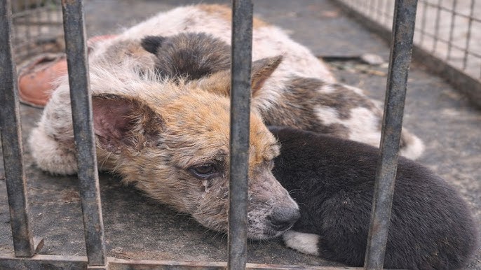 Silent Sacrifice: Despite being in constant pain and scratching incessantly without a moment’s peace, Bom still held her puppies close to nurse them.