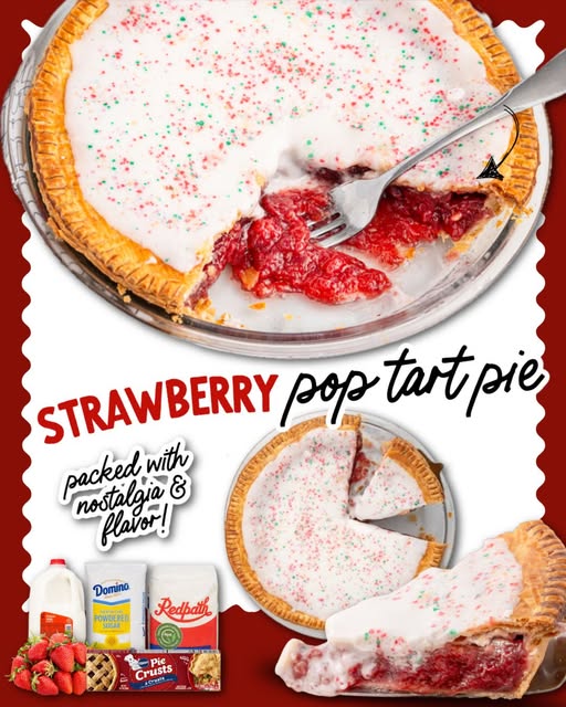 Enjoy the nostalgic taste of Pop Tart pie with its flaky crust, fresh strawberry filling, and sweet glaze. Easy and perfect for any gathering!