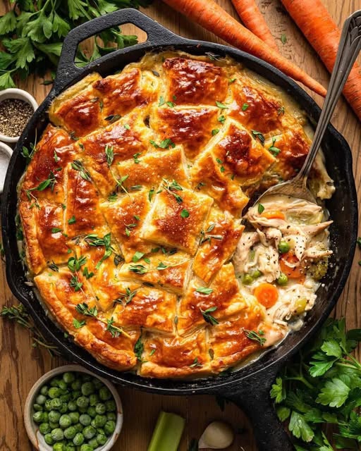 Cozy Fall Chicken Pot Pie with Golden Puff Pastry Tiles