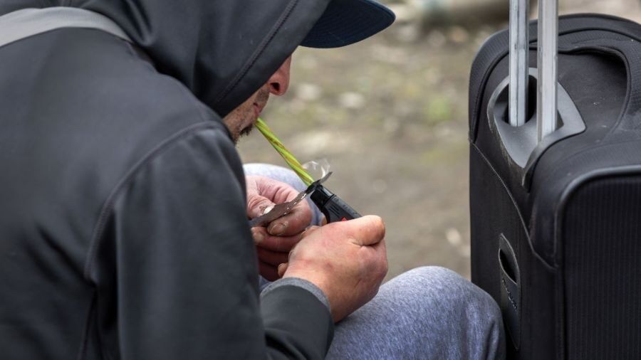A man smokes fentanyl in downtown Seattle, underscoring the city’s ongoing struggle with open drug use as officials again move to divert drug possession cases away from prosecution. (Photo by John Moore/Getty Images)