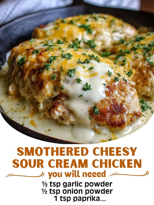Smothered Cheesy Sour Cream Chicken is everything a comforting dinner should be—simple, creamy, and deeply satisfying. With minimal prep and maximum flavor, it’s a recipe you’ll come back to again and again. I hope it becomes a favorite in your kitchen just like it is in mine.