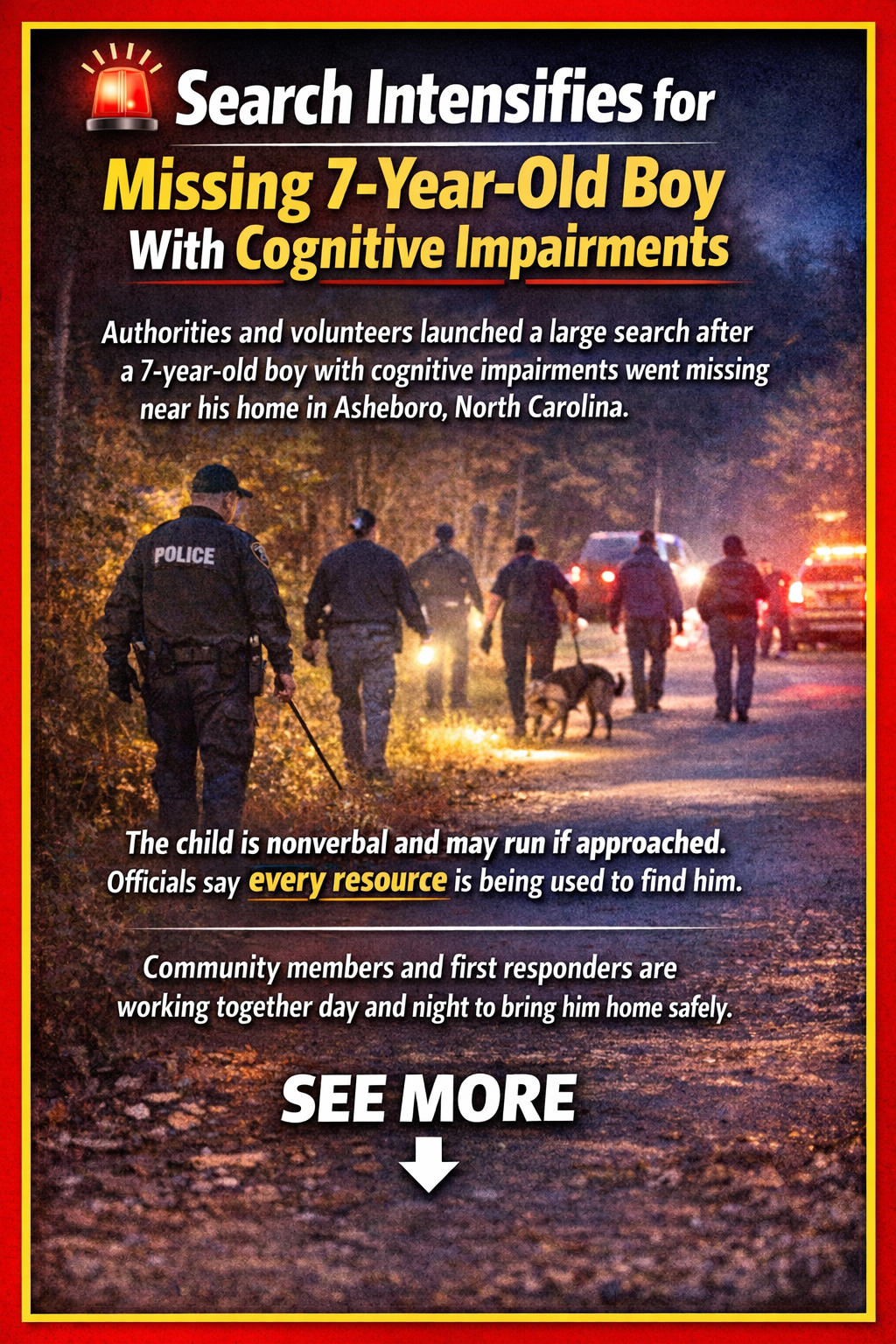 ASHEBORO, N.C. — Deputies said a 7-year-old boy with special needs was found dead after three days of search efforts.