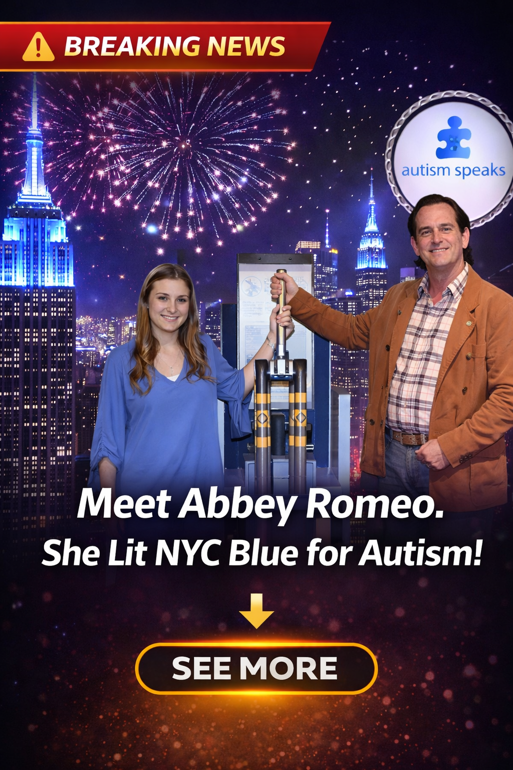 The lighting ceremony took place on April 1, officially kicking off the month and welcoming Abbey alongside her mother, Christine Romeo, and Autism Speaks President and CEO Keith Wargo. Together with members of the autistic community, they flipped the switch to symbolize a shared commitment to greater understanding, acceptance, and opportunity.