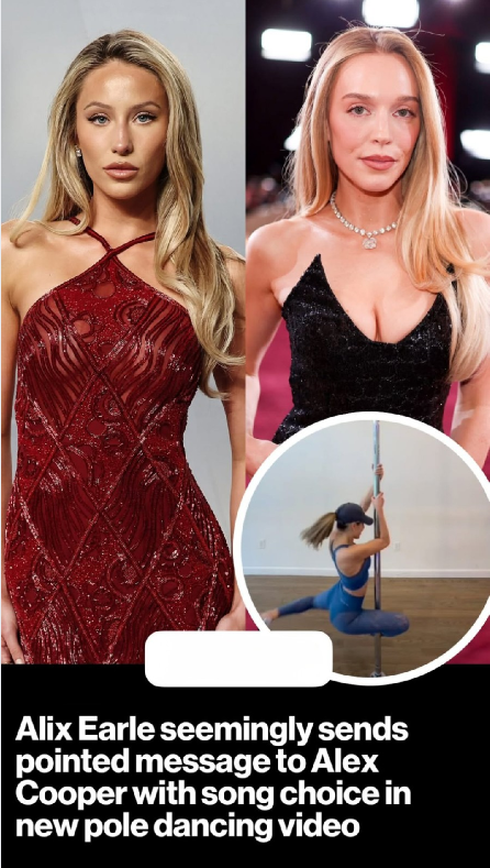 Alix Earle appeared to send a pointed message to Alex Cooper with a new video of herself pole dancing as their ongoing drama heightens.