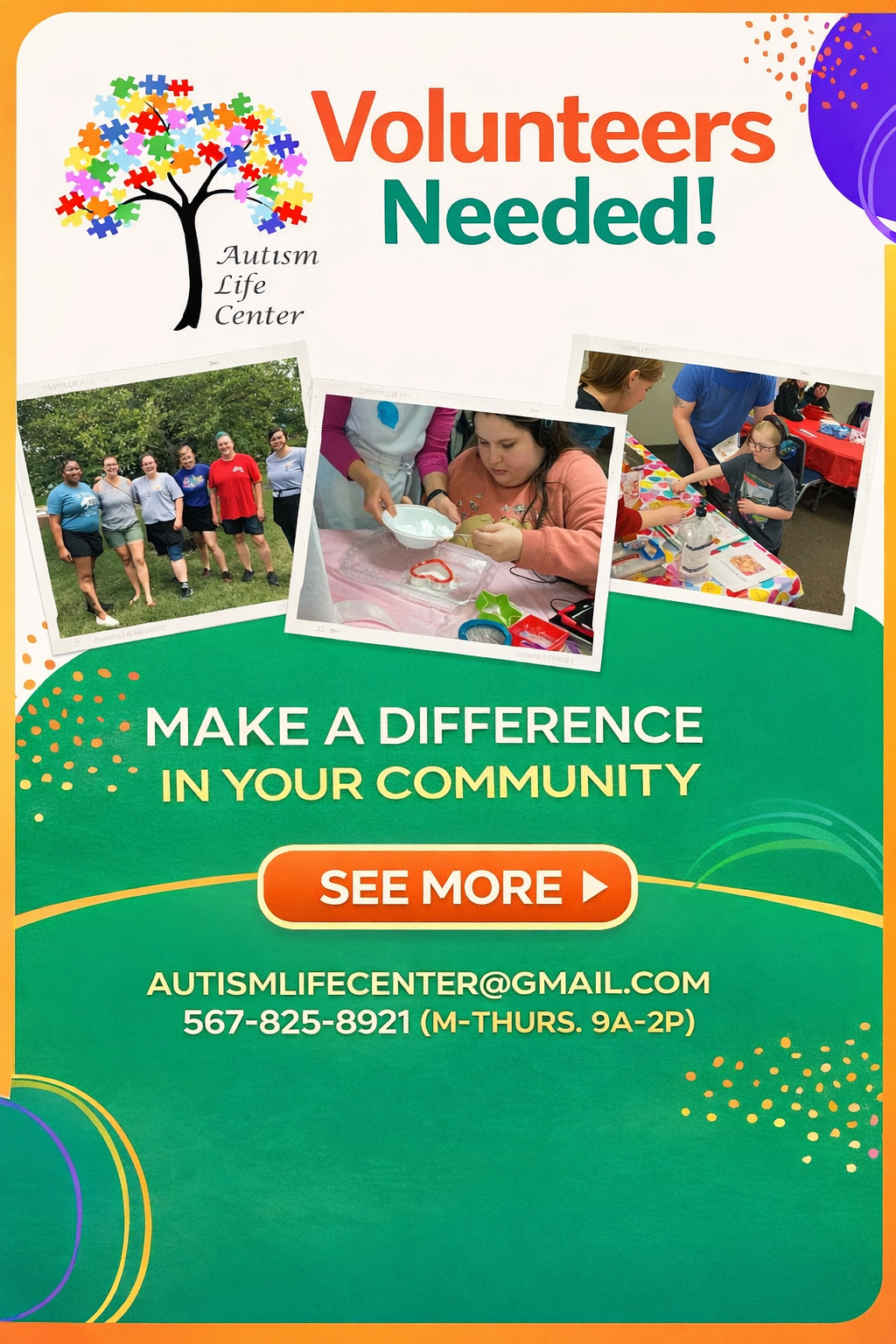 Autism Life Center in Lima is looking for volunteers to help with event planning and hosting, set up/tear down, craft and activity tables and more.