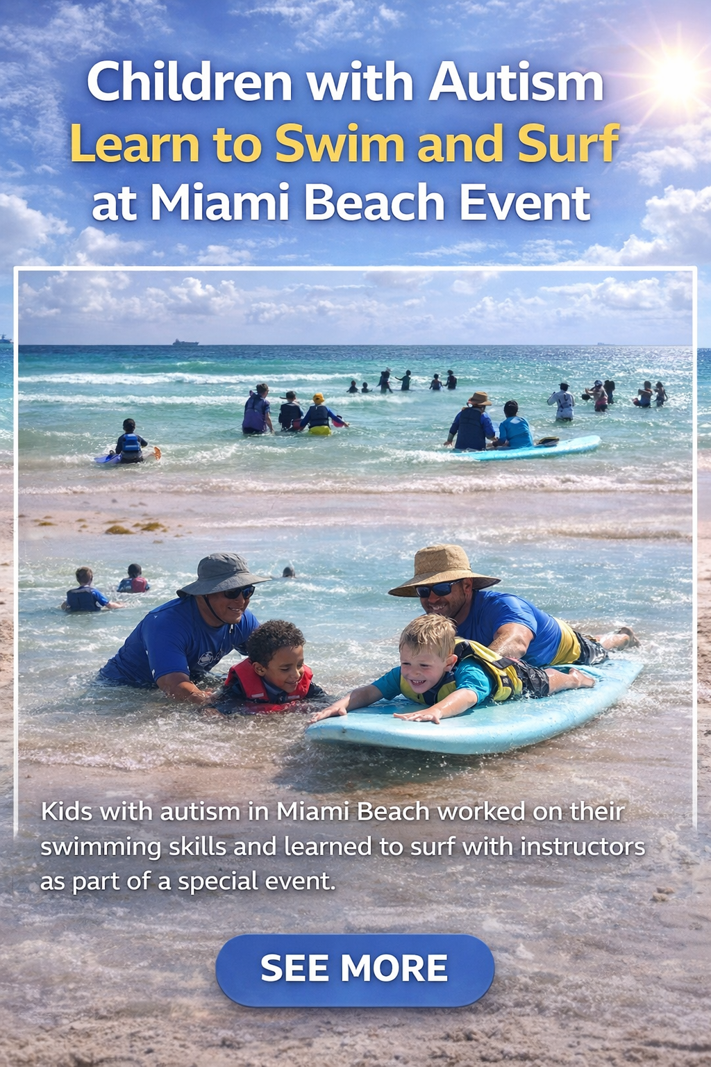 The City of Miami Beach Parks and Recreational Department and the Center of Autism and Related Disabilities teamed up to provide children with the opportunity to work on their swimming skills and learn basic oceanography, meteorology and surfing on Friday.