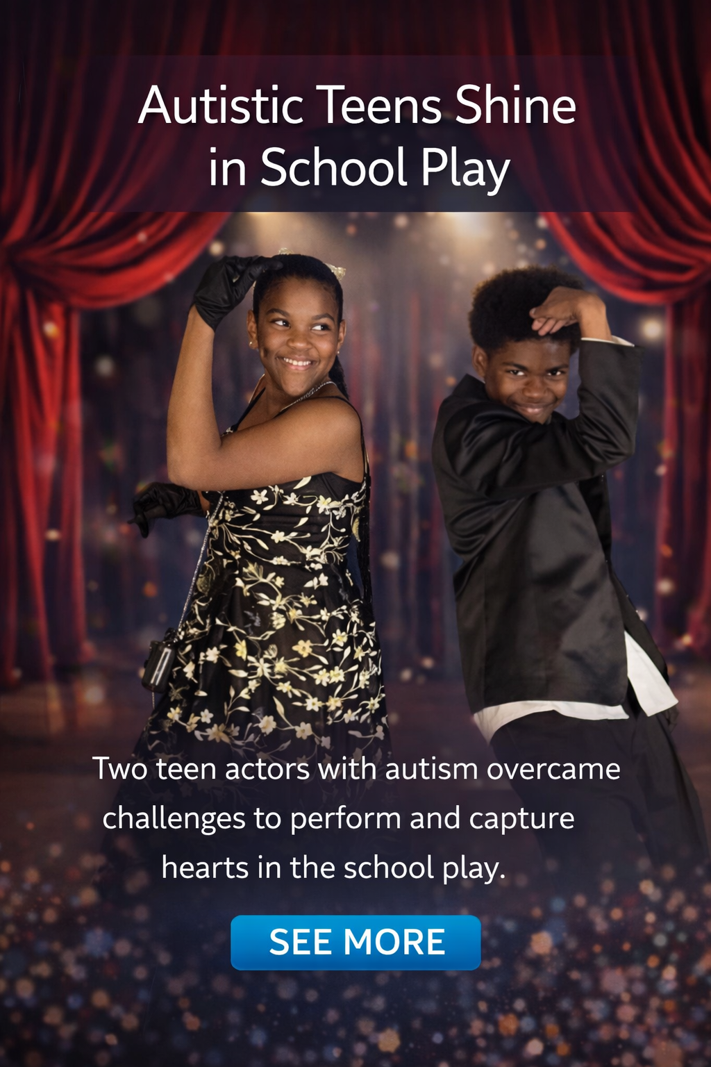 Today, Brandon, who is in eighth grade, and Cameron, in seventh, have speaking roles in the play at Cottage Grove Middle School. They are on the speech team and are both published authors, writing about their autism experiences in Brandon’s book, “Brandon Spots a Sign,” and Cameron’s tale, “Cameron Goes to School”.