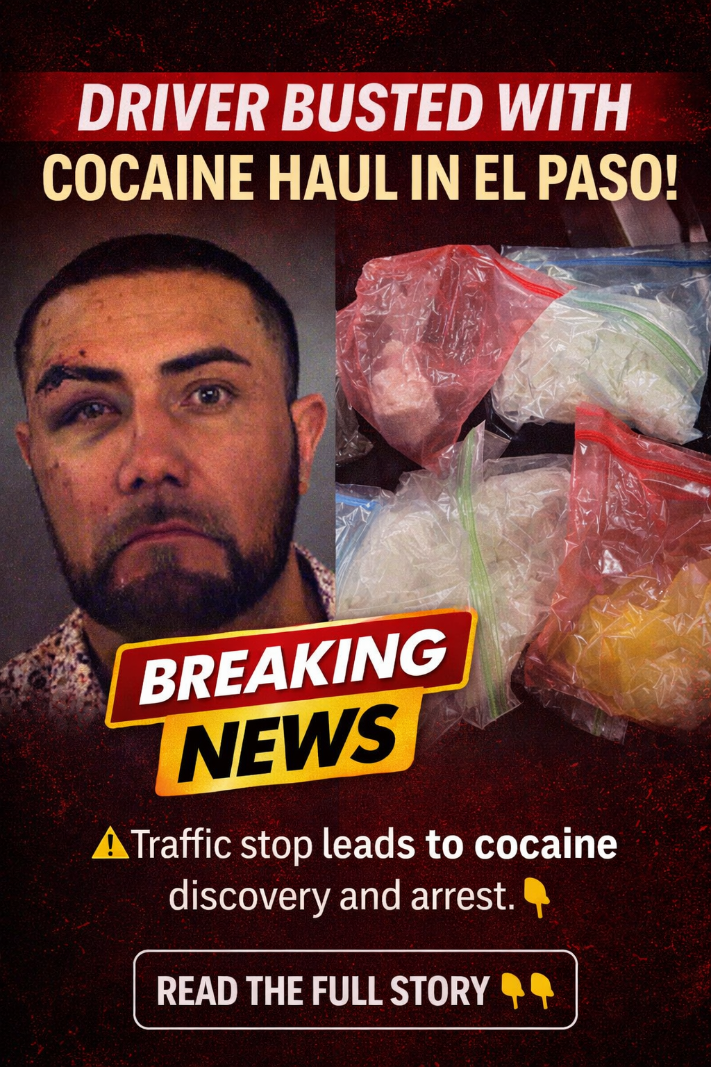 EL PASO, Texas (KFOX14/CBS4) — A routine traffic stop in El Paso on Jan. 1 escalated into a significant arrest when deputies discovered cocaine and an open container of alcohol in a vehicle.