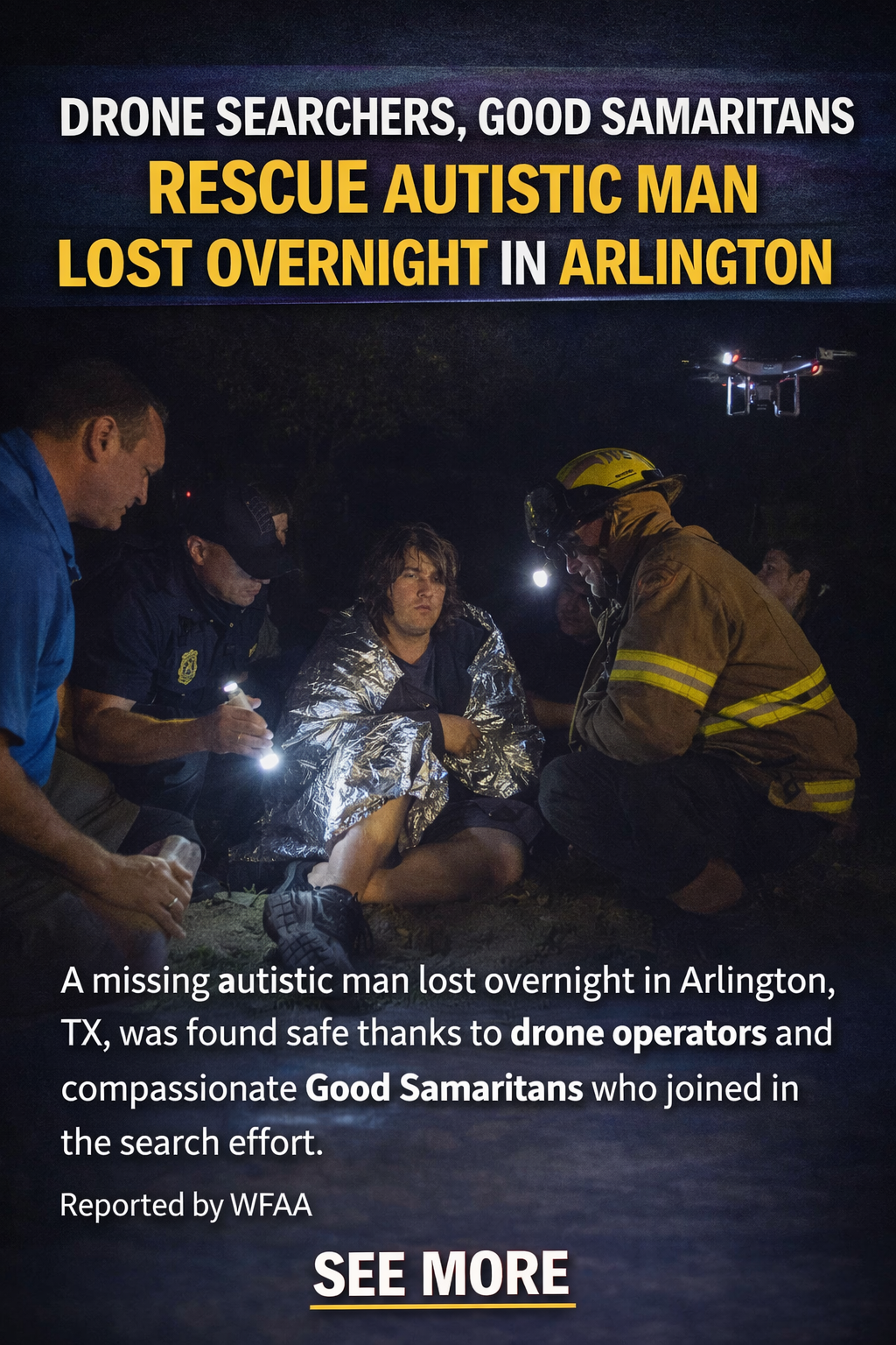 A collaborative community effort involving a drone operator saved an autistic man’s life after he got lost in Arlington’s River Legacy Park.
