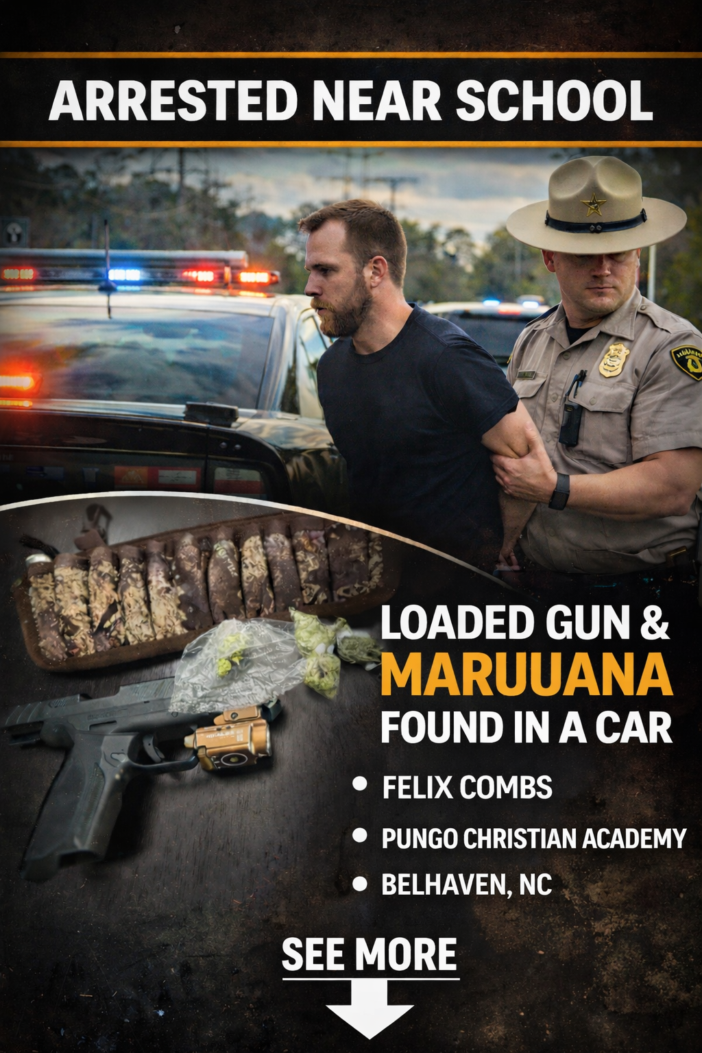 A 20-year-old man was arrested after a firearm and marijuana were found inside a vehicle on school property, prompting a brief lockdown at Pungo Christian Academy in Belhaven, authorities said.