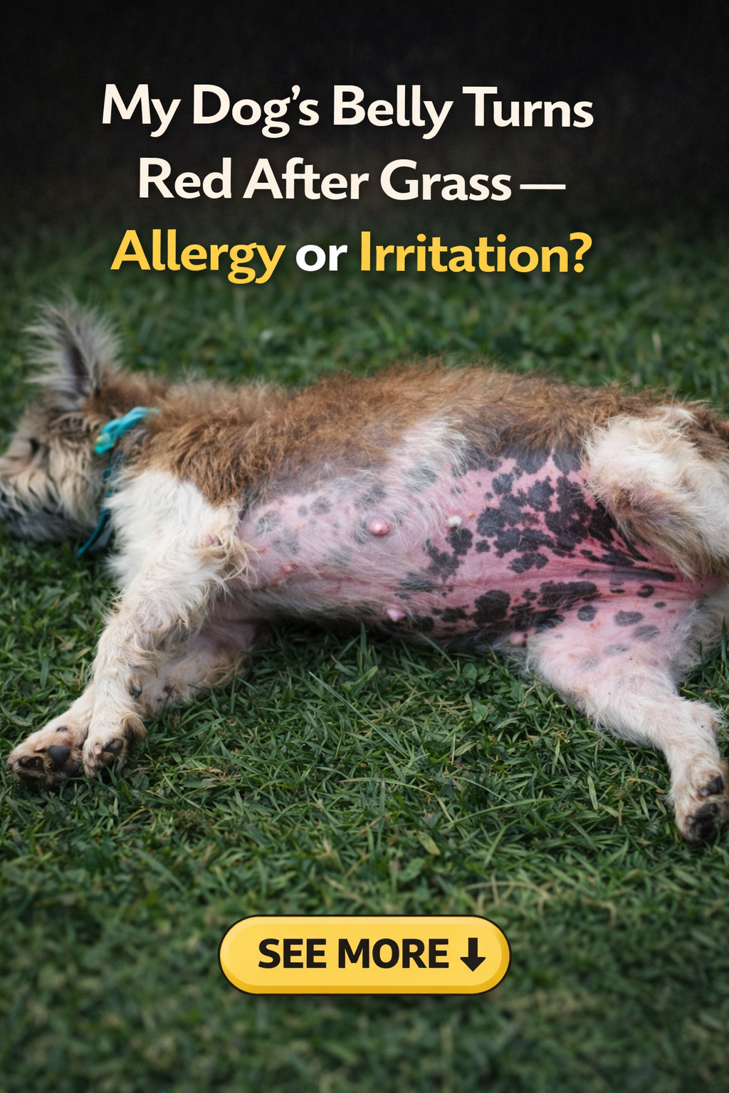 If your dog’s belly becomes red, blotchy, or itchy after lying or rolling on grass, this is very common and usually points to contact irritation or grass allergies. Because belly skin is thin and often hairless, it reacts first.