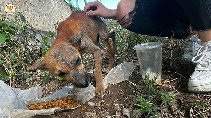 A Hopeless Wait on the Streets When rescuers discovered Martina, he didn’t run away, nor did he bark. He simply stood there, tired and waiting. His coat was stained and rough, his skin severely irritated, and every step he took felt heavy, as if his body was slowly giving up. When food was placed before him, Martina ate hurriedly and with great urgency, as if afraid this small bit of happiness might disappear at any moment.