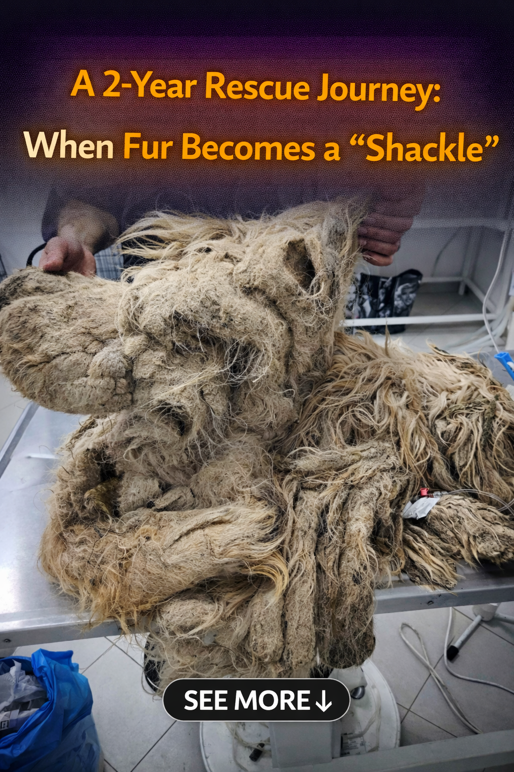 The Burden of Waste: The tail and hindquarters were so badly matted that waste would get trapped in the hair, preventing the dog from defecating normally.
