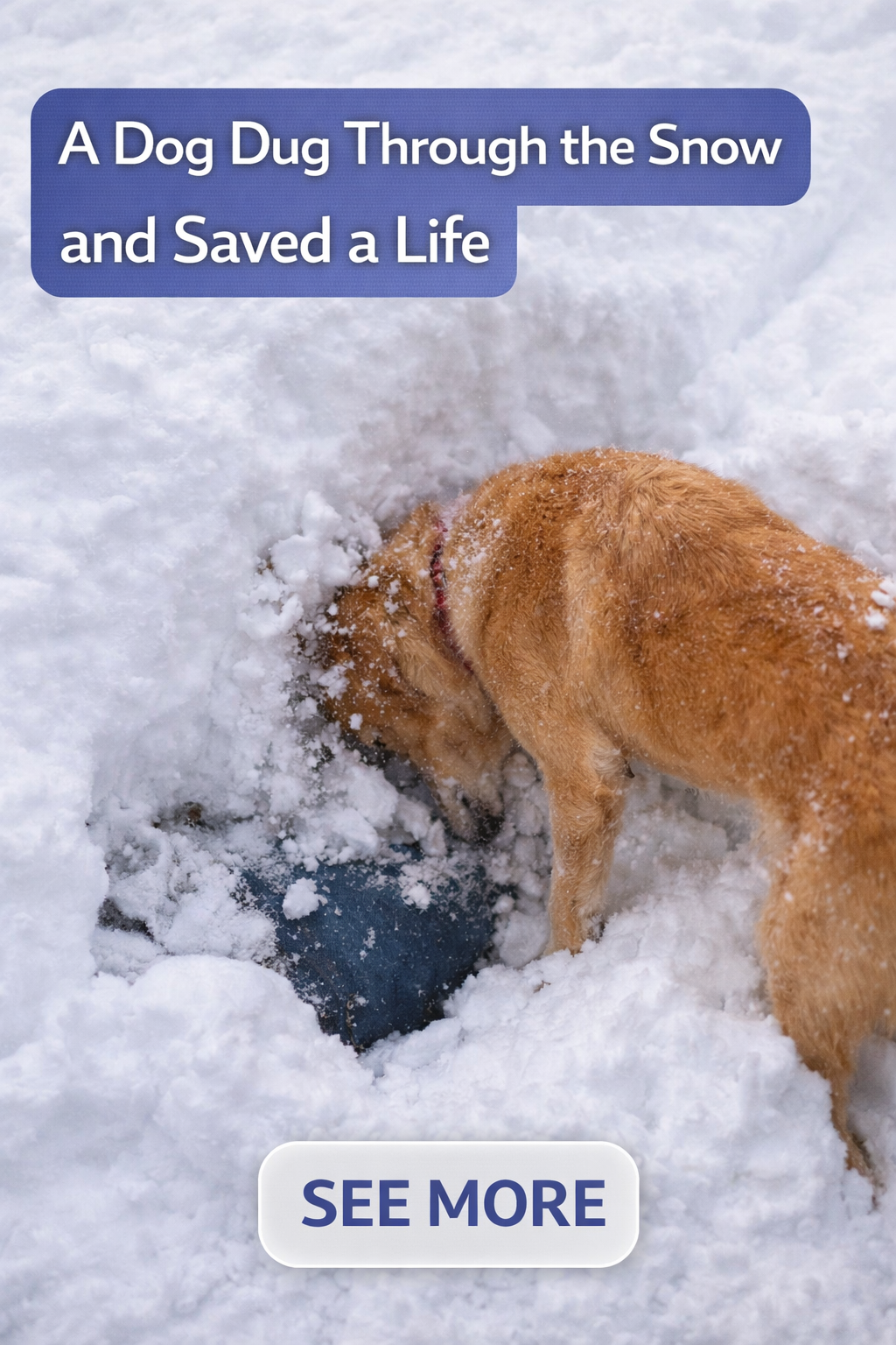 Rescue efforts followed the dog’s relentless digging. Snow was cleared away. A life was pulled back from beneath the cold silence.
