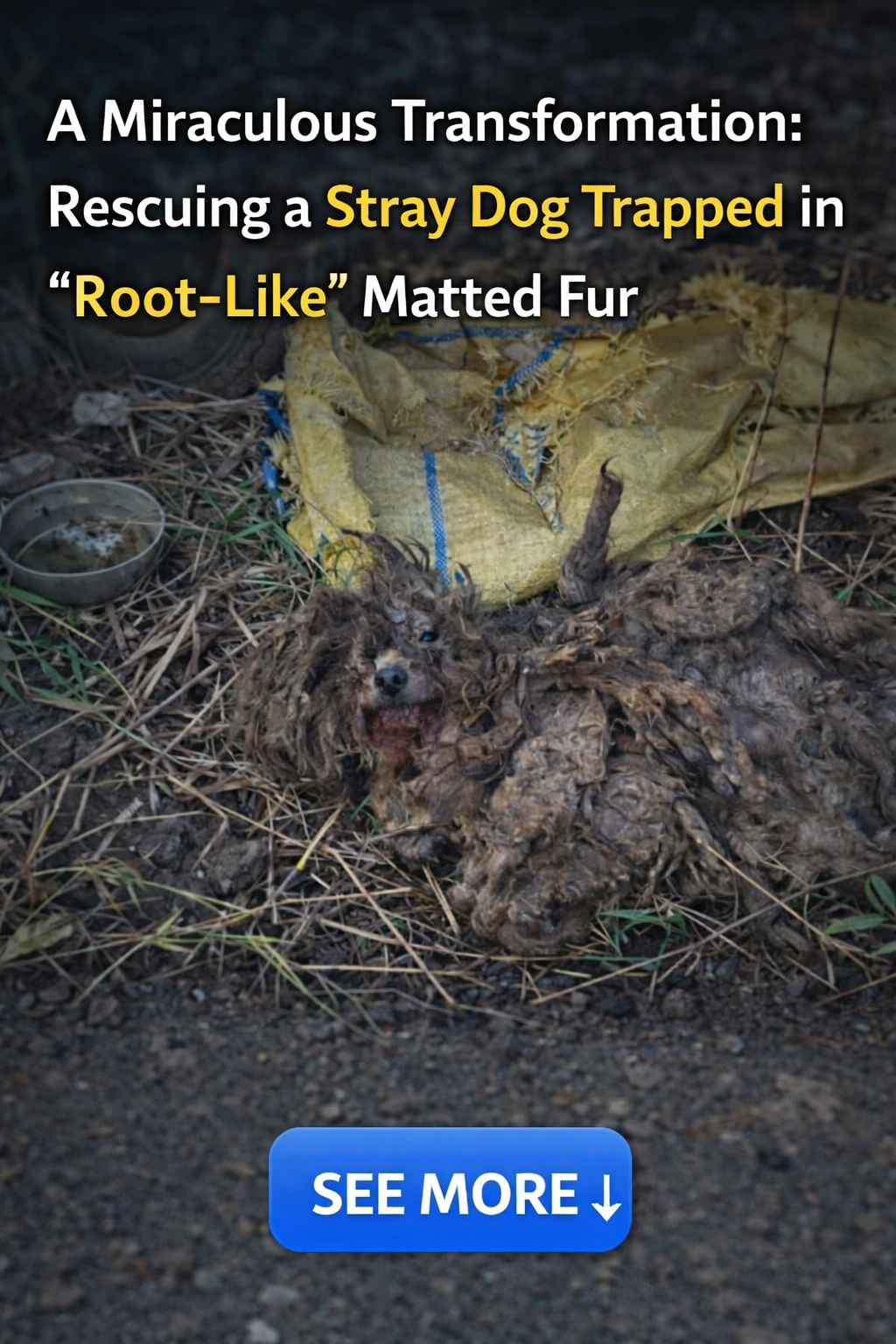 The journey begins when rescuers discover a small dog hiding from the world beneath an old truck. The dog’s condition was heart-wrenching: its entire body was encased in a thick layer of matted fur, hardened and caked with mud. It looked less like an animal and more like a tangle of dry tree roots wrapping around a tiny frame.