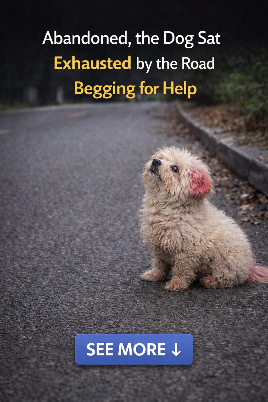 Abandoned, the Dog Sat Exhausted by the Road Begging for Help