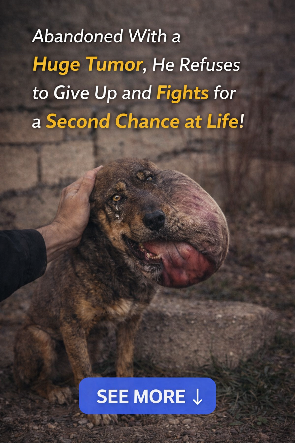 Brady was not only abandoned but also suffered abuse from neighborhood children who beat and stoned him. The injuries from this mistreatment eventually developed into a massive tumor that consumed nearly half of the small dog’s face. Every day, Brady struggled through the streets dragging the heavy tumor, enduring the cold indifference and disgust of passersby who saw him only as a “filthy” stray.