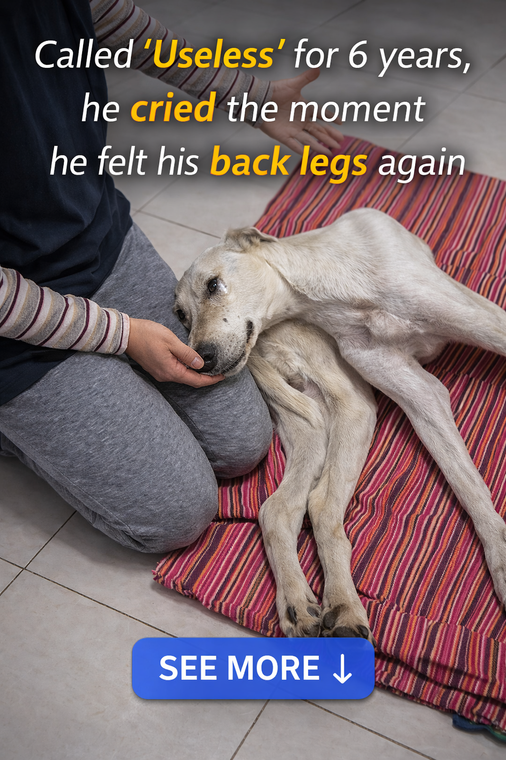 Before falling into this tragic situation, Airchick appeared to have once had a home, as his gentle gaze and calm nature suggested he was familiar with human companionship. However, his life took a dark turn when he was abandoned and subsequently struck by a car. When the rescue team found him, Airchick was stretched out with severely injured back legs, leaving him unable to stand or escape danger. His eyes held a deep sadness, as if he were still waiting for his former owner to return and save him.