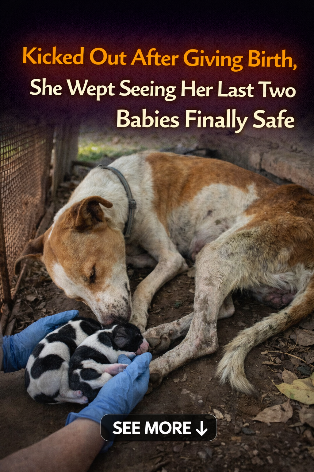 Peace of Mind: Her eyes, once filled with panic, grew gentle as she realized she was safe and that her two surviving puppies were being cared for.