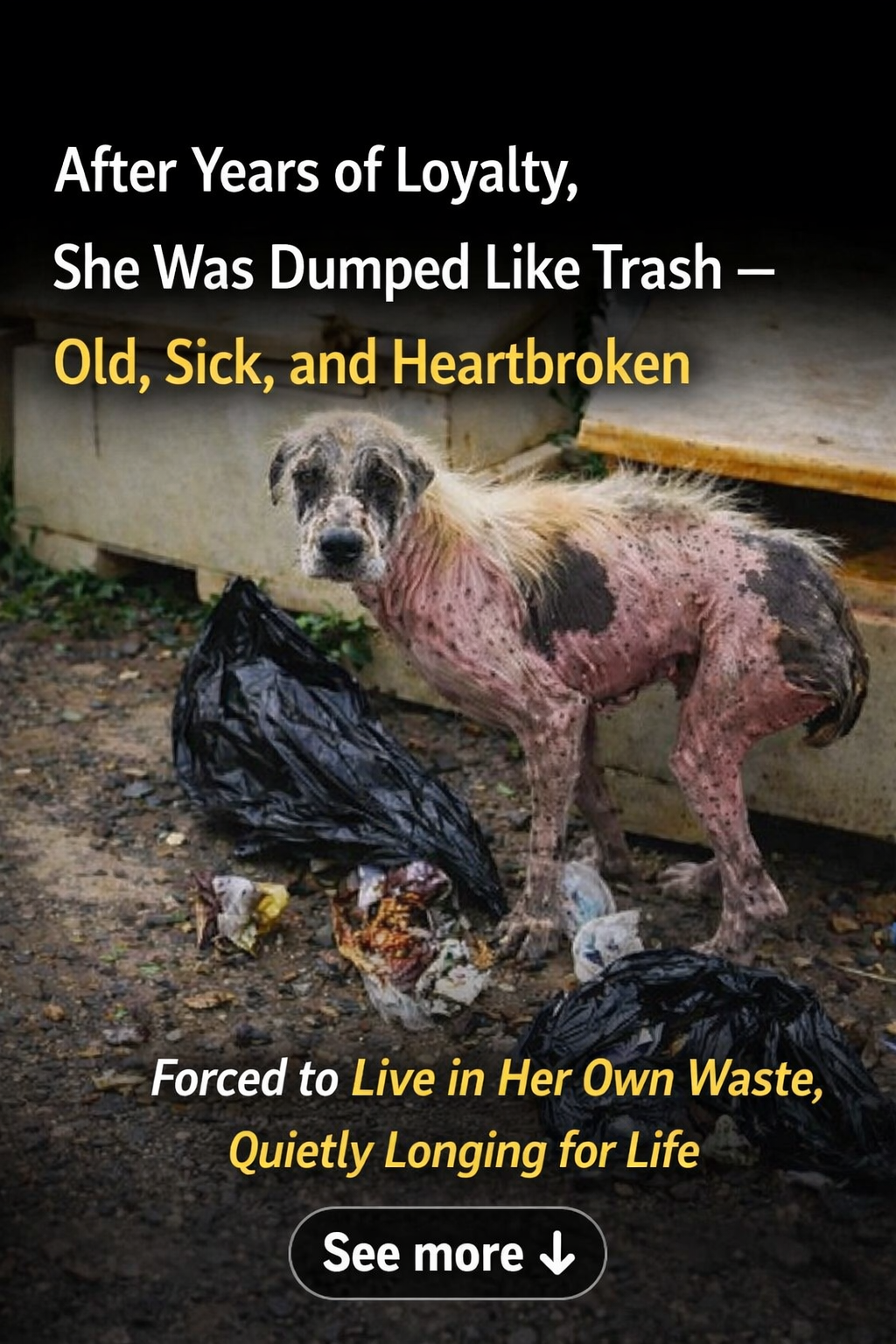Khorshid was once a gentle and loyal dog living with a shepherd in a small village in Mazandaran. However, her life took a dark turn when illness struck. Instead of receiving care, Khorshid was discarded like trash, left to wander the streets with an exhausted body and a broken heart.
