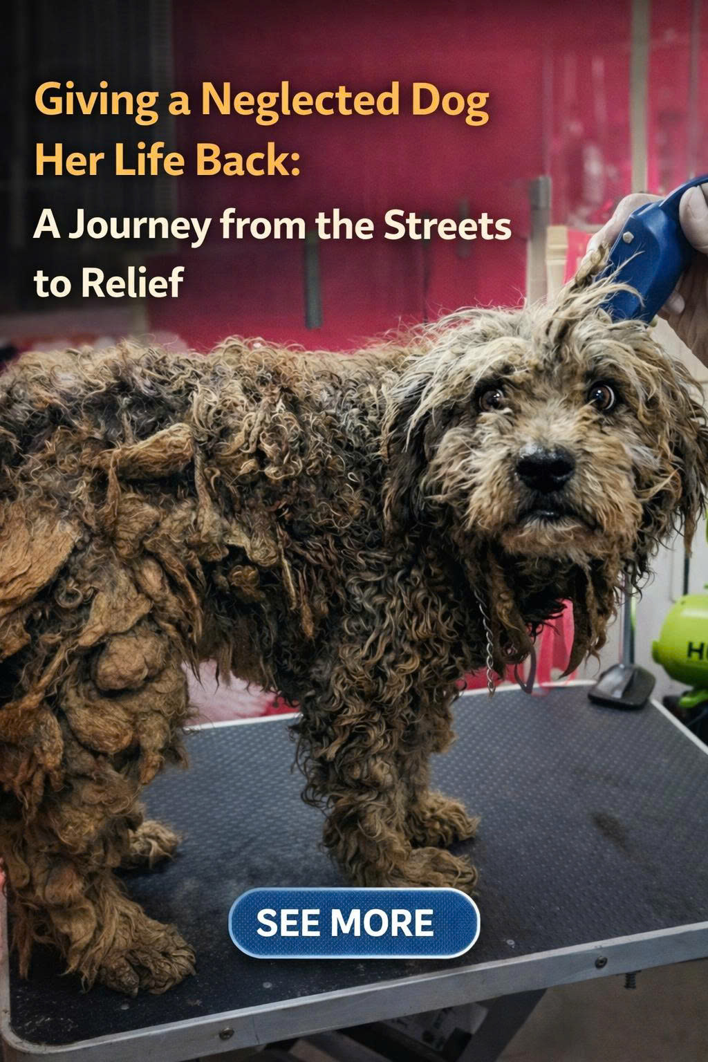 The Pain: Severe mats constantly pull and tighten the dog’s skin, causing continuous discomfort and pain—much like someone constantly pulling on your own skin.