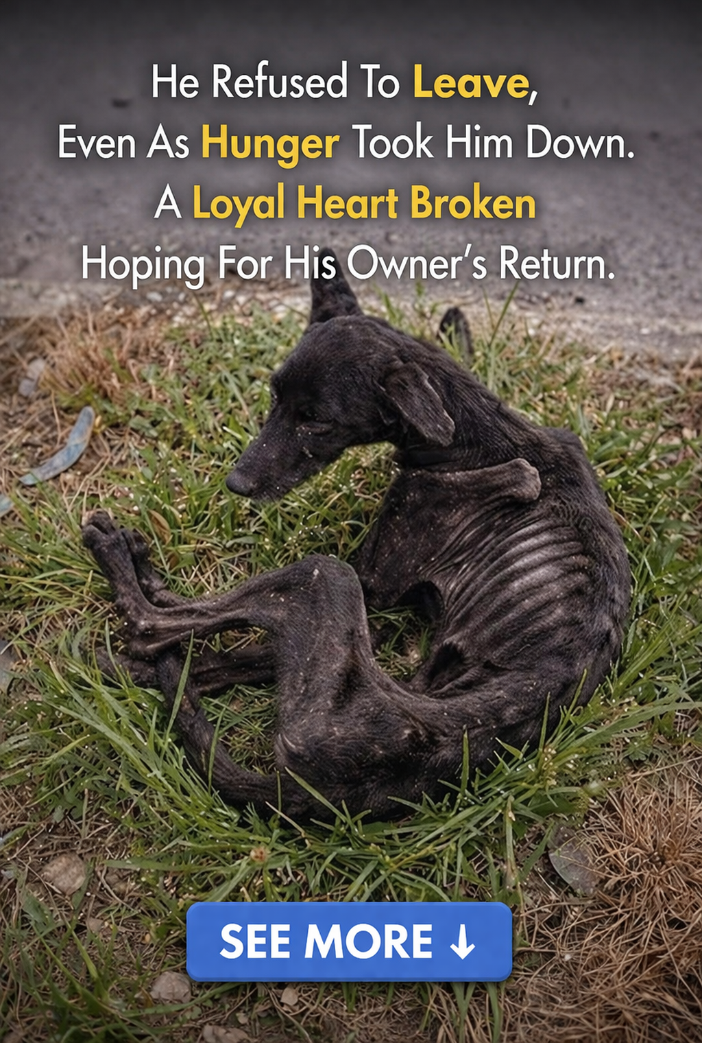 The rescue began with a heartbreaking report: an emaciated dog had collapsed on the side of the road. Locals revealed the truth—he had been abandoned in a nearby park just a day prior. Too weak to stand or walk, he sat in the spot where he was left, waiting for a return that never came.