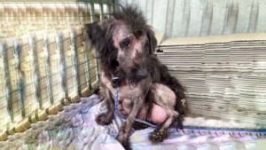 The story began on a sweltering summer day in a parking lot. Amidst the lifeless cars, a tiny, emaciated dog was found trembling with fear.