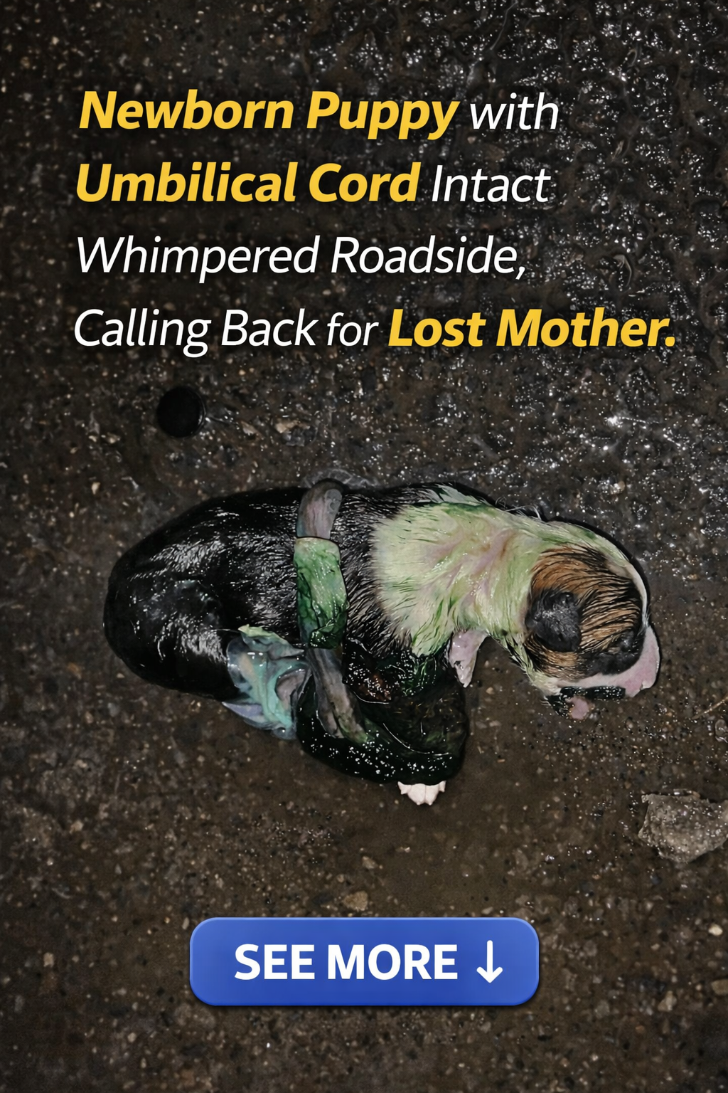 The story begins on a cold winter day when a rescuer happened upon a newborn puppy left all alone by the roadside. The little one was soaking wet, his umbilical cord still attached, and his tiny body shivering from the cold, with no mother dog in sight. Without a moment’s hesitation, the rescuer wrapped him in a cloth and rushed him home, beginning a grueling battle to save a life.