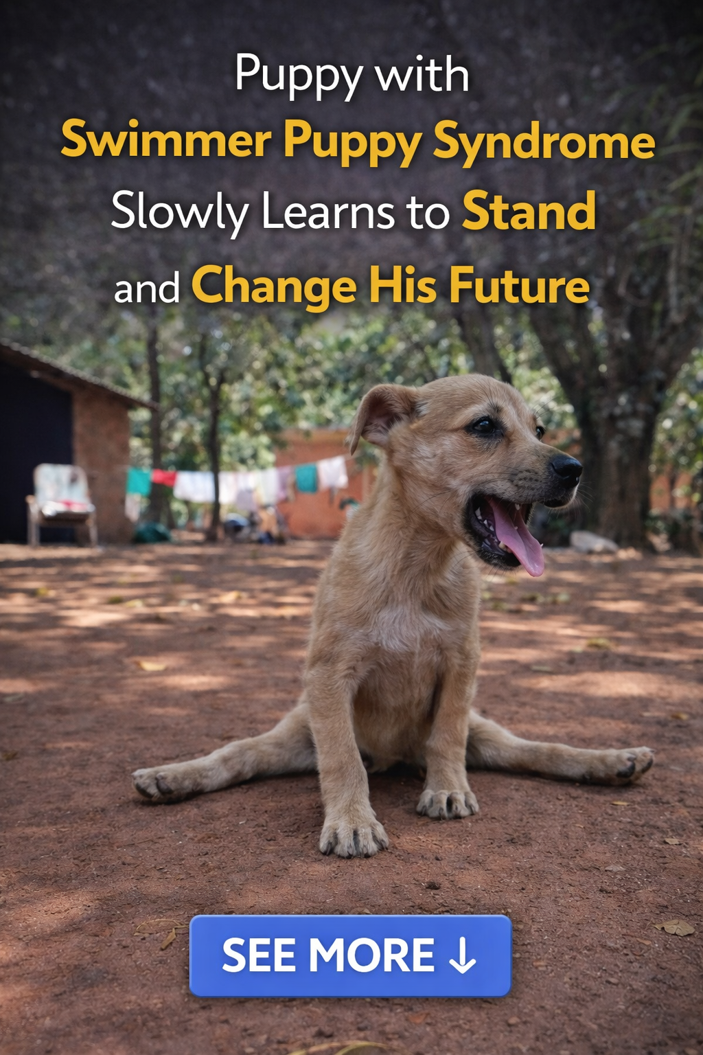 In the world of small animals, sometimes simply standing on one’s own two feet is the toughest battle of all. The story of this little puppy born with “Swimmer Puppy Syndrome” is a journey of pure resilience, proving that persistence and love can truly alter destiny.