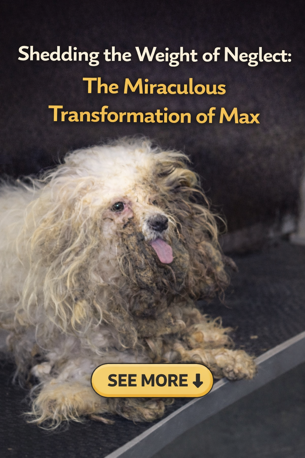 Max was brought to the grooming studio in a condition that shocked even the most experienced professionals. He had endured unimaginable suffering, buried under a massive coat of severely matted fur that weighed him down and caused constant pain. The neglect was so extreme that he had become a prisoner of his own hair, hidden away from the world in a state of silent misery.