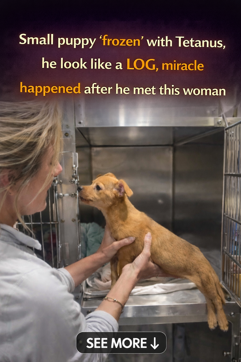 Small puppy 'frozen' with Tetanus, he look like a LOG, miracle happened after he met this woman