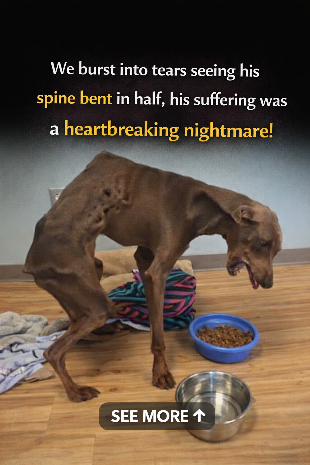 When the rescue team first saw Spencer, they could not believe their eyes. The small dog had been abused so severely that his body was deformed, and his spine was bent in half, making it impossible for him to stand properly. Spencer was emaciated and frail, appearing to have survived a “living hell”.