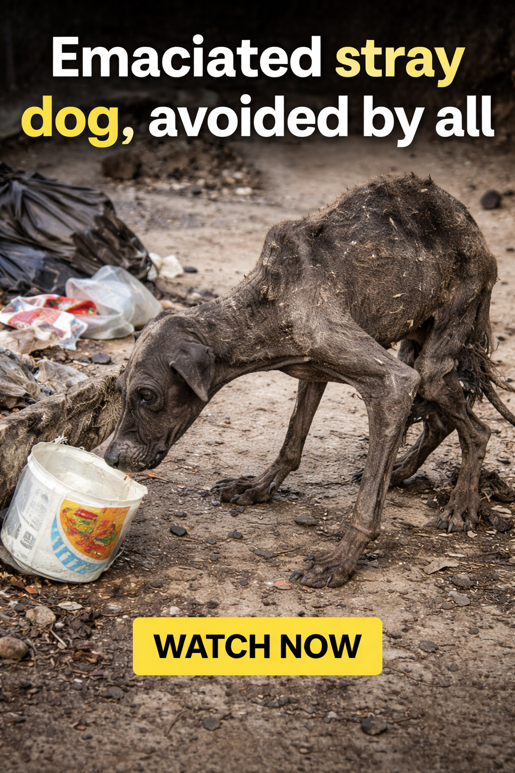 Emaciated stray dog- bat-like from malnutrition- struggles by the garbage- avoided by all #Animals #recuseAnimals #AnimalLovers #PetTok #FunnyAnimals