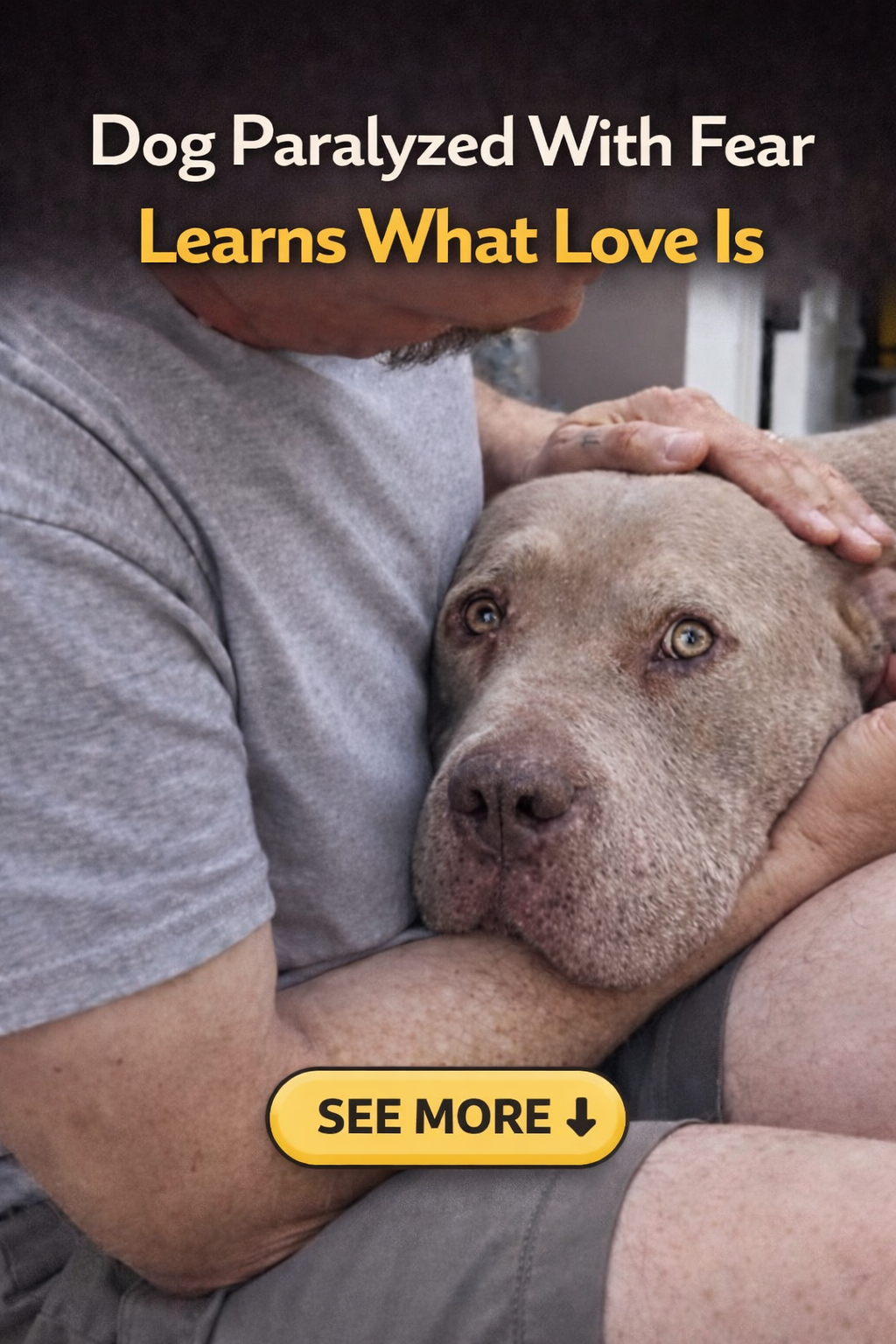 The story starts with Bruno being rescued from a terrible situation. When he first arrived at the shelter, he was so paralyzed by fear that he couldn’t stand or walk. Rescuers had to move him by gently pulling him on a blanket. Bruno’s eyes reflected a deep-seated distrust of humans—he had never known kindness or a loving touch until that moment.